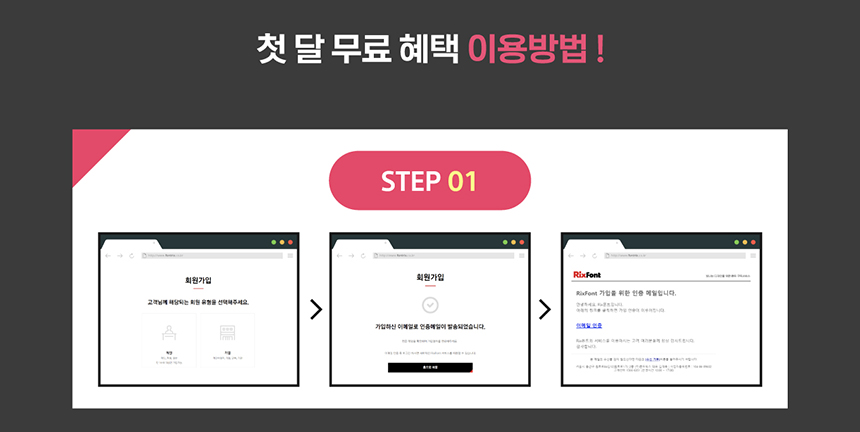 1. 릭스폰트 공식 홈페이지에서 회원 가입 후 이메일 인증을 해주세요!