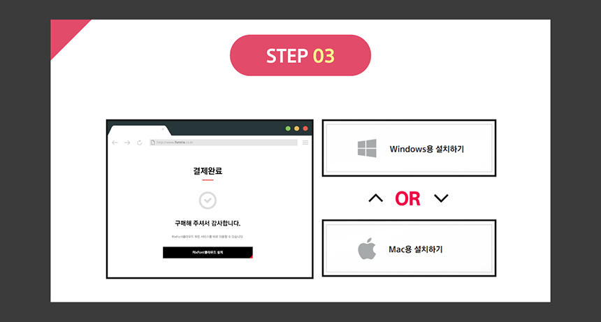 3. 카드 정보 입력 후 신용카드 결제 -> 결제 완료 확인 후 사용 환경에 맞는 RixFont클라우드를 설치해 주세요.