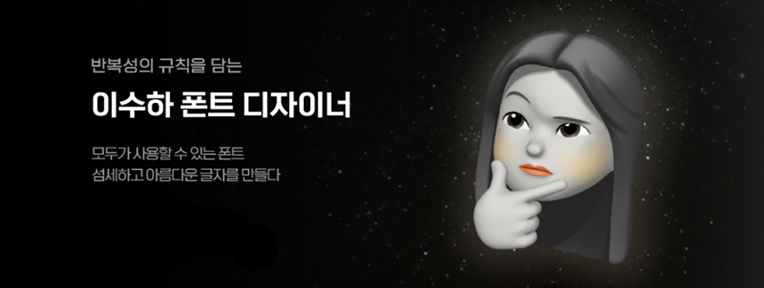 요즘은 외국 서체 디자인을 보며 여러 가지 영감을 얻습니다. 영문은 한글과 다르기 때문에 곡선과 획의 대비를 자유롭게 이용한 디자인이 많아 재미있고, 한자와 일어는 필법 디자인 요소들이 획이 많아질 때 어떠한 규칙을 적용하는지 찾아보며 참고하게 됩니다.