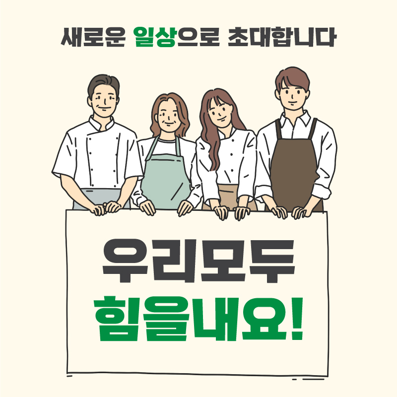 다시 함께하는 일상을 위한 노력이 요즘 많이 이뤄지고 있죠. 주목성이 요구되는 배너, 문구가 강조되어야 하는 포스터, 인쇄물 등에 텍스트로 활용해 보세요.