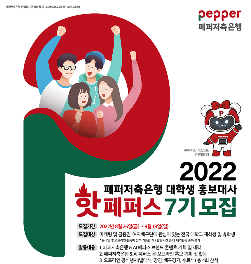 현재 페퍼스체는 페퍼저축은행 홈페이지와 기업 관련 곳곳에 쓰이고 있습니다. 개인 및 기업 사용자를 포함한 모든 사용자에게 무료로 제공되며 자유롭게 사용할 수 있기 때문에 다양하게 활용해 보면 좋을 것 같습니다🙌