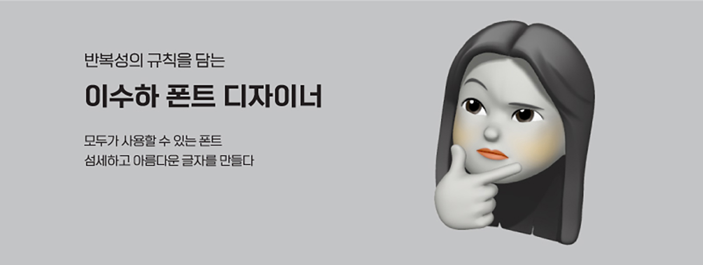 예전 입시 미술을 할 때 그림의 완성은 마지막 블랙과 화이트 물감을 칠할 때라고 생각했습니다. 폰트도 그런 것 같아요! 멋진 그래픽 혹은 사진 위에 어울리지 않는 폰트가 들어가면 너무 아쉽거든요. 폰트는 디자인의 완성도를 결정하는 중요한 부분이라 생각합니다! 그래서 더 열심히 좋은 폰트를 만들어야겠다 늘 다짐합니다😊