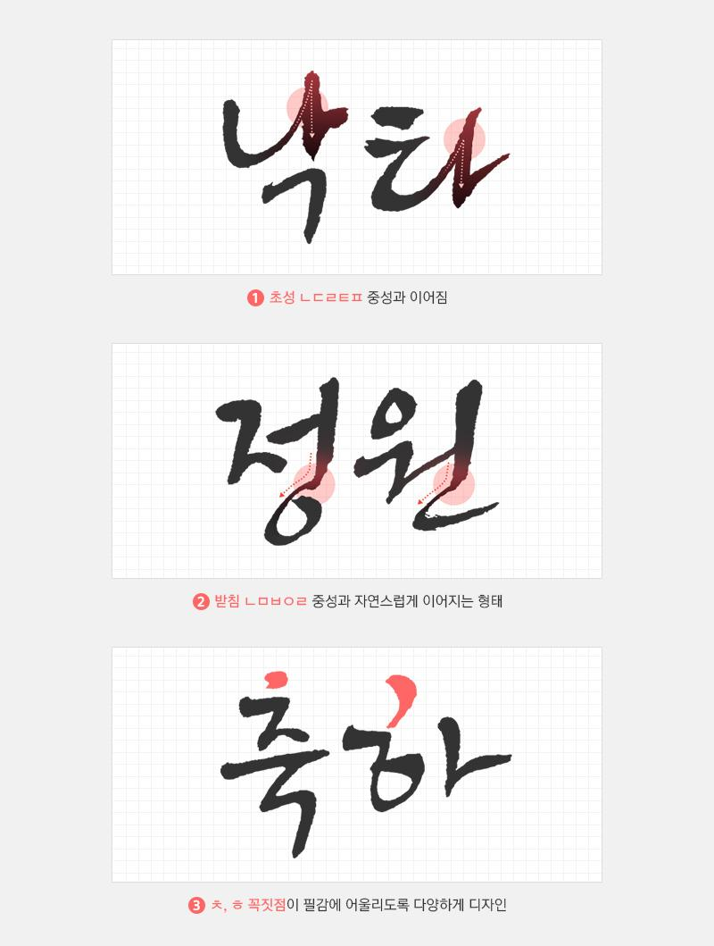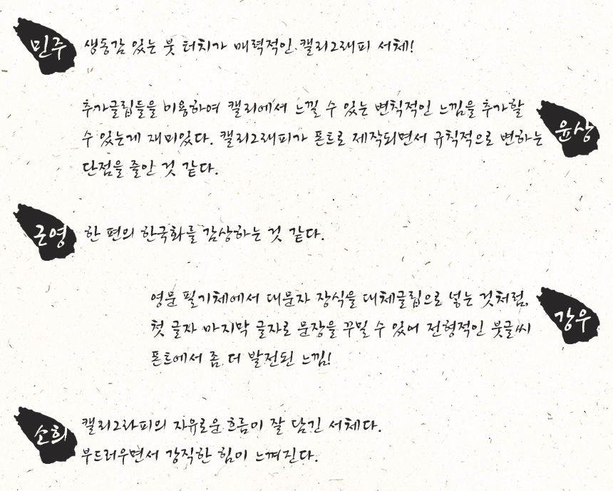 비전문가인 제가 봤을 때 폰트가 '붓글씨 같다'는 느낌이 많이 들어요. 다른 폰트들을 디자인할 때와 다른 점이 있었다면?