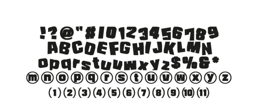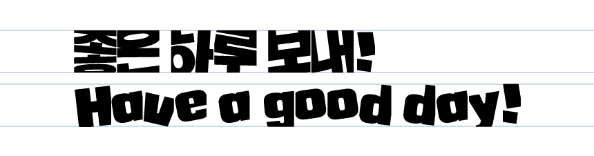 영문, 숫자, 약물 디자인도 특징을 그대로 반영해 혼용 시 조화롭도록 제작했습니다. 장문의 텍스트로 썼을 때 한글 디자인보다 리듬감 있는 글줄을 느낄 수 있어 더욱 독특하고 재밌는 표현이 가능합니다.