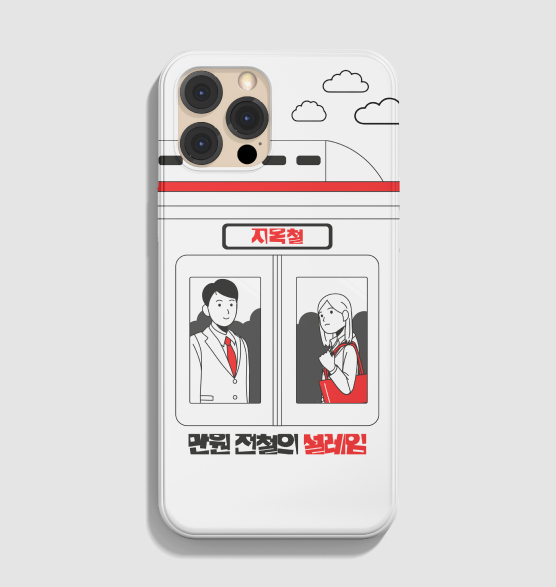 만원 전철의 설렘은 사실 존재하지 않겠지만^^ 이렇게 문구를 넣은 일러스트 폰 케이스 등 다양한 굿즈에 재밌는 디자인으로 활용할 수 있습니다. 가시성이 좋고 다방면으로 활용도가 높은 서체입니다.